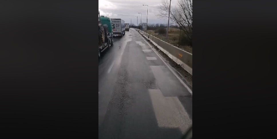 A rendőrök maszkban kérdéseket tesznek fel a kamionosoknak, de engedik is őket tovább.